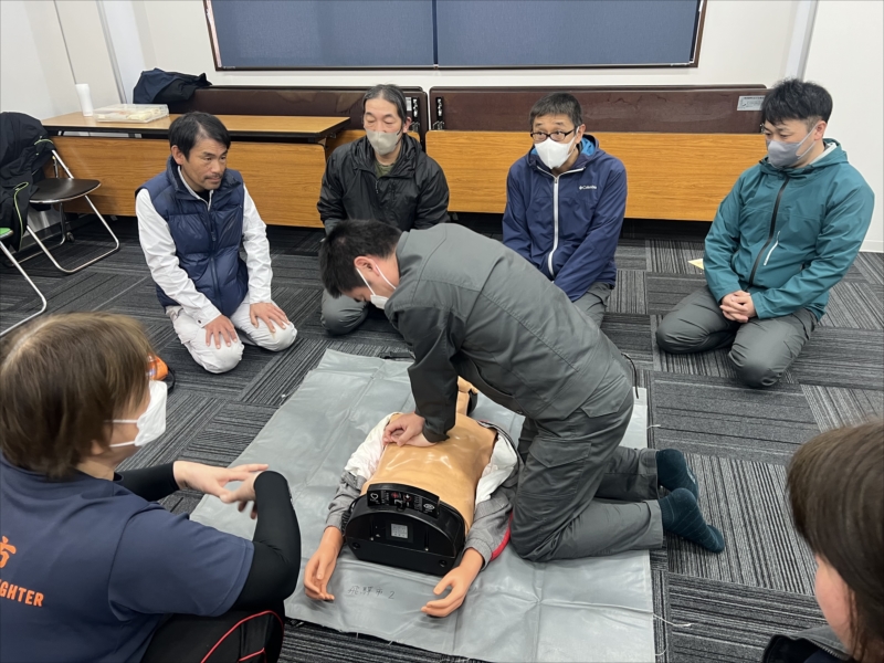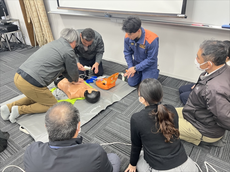 主に心肺蘇生法やAEDの使い方を教えていただき、実際に体験してきました。